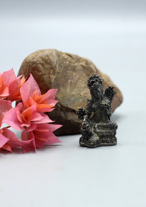 This is a beautiful mini Green Tara Statue made of brass. Green Tara appears as young beautiful maiden. Her body is green in color. She has one fac...