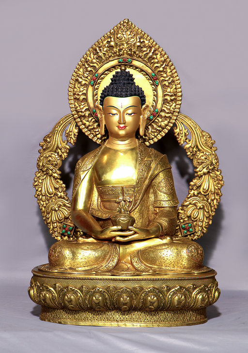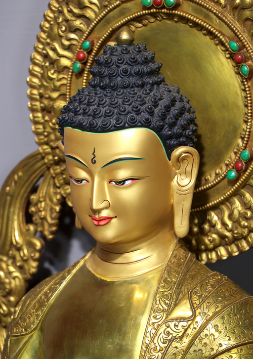 This Shakyamuni Buddha Statue is fully gold plated and handcrafted by skilled artisans of Lalitpur, a city renowned for its rich artistic heritage....