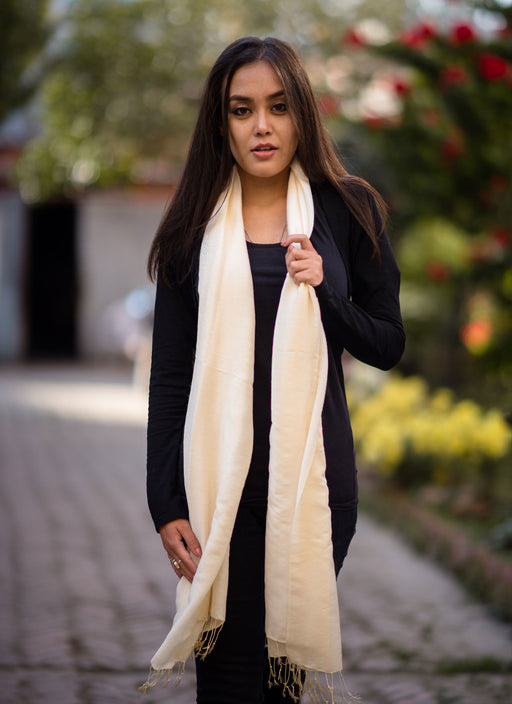 View full detailsDelicate Spring Silk Pashmina Shawl-Shiny Cream