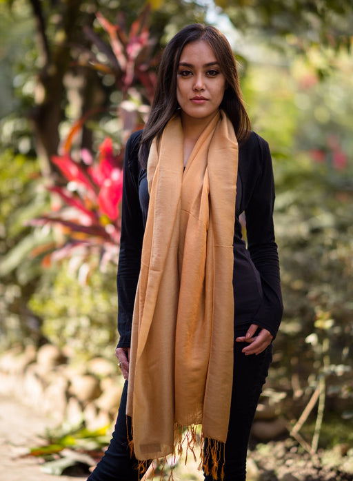Hand Loomed Camel ColorYak Wool Shawl with Buttefly Pattern