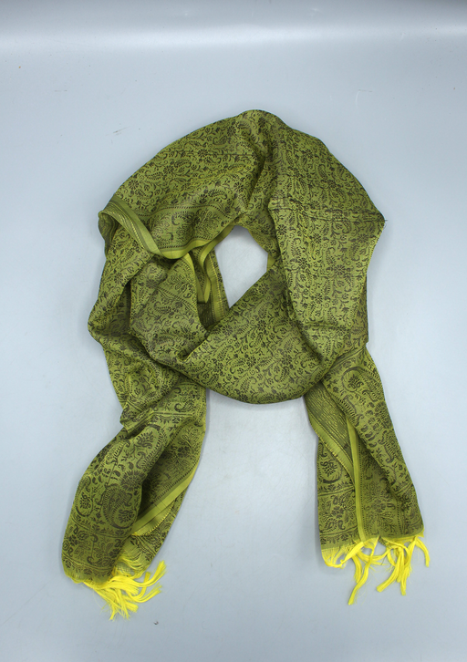 This is a cotton shawl handmade in Nepal using batik technique. The shawl has beautiful pattern printed with Green color and Green and white fringe...
