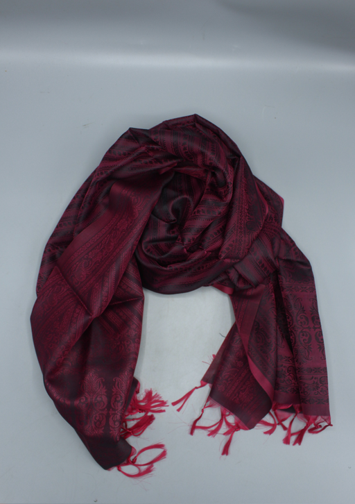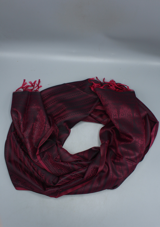 This is a silk mixed polyester vine designed shawl handmade in Nepal.  The shawl is smooth to the touch and very light weight to carry with. These...