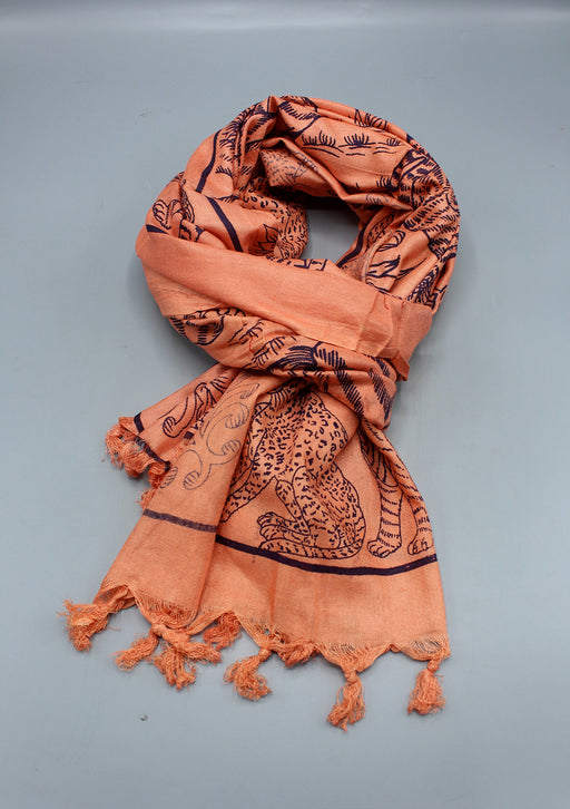 Pure Cotton Wildlife Tiger Printed Orange Shawl with Furka