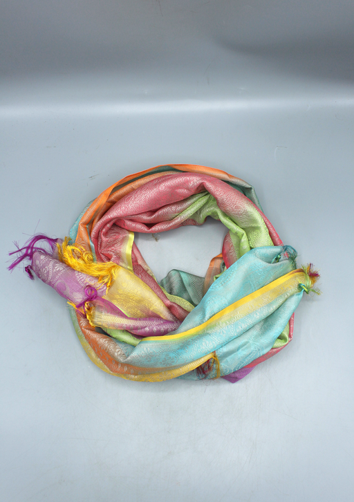Silk Mixed Polyester Vibrant Multi Color Shawls with Furka