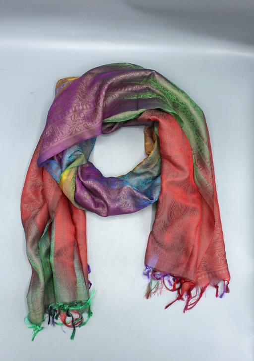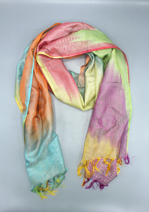 Silk Mixed Polyester Vine Designed Multi Color Shawls