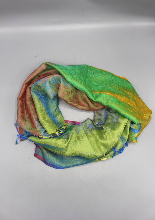 Silk Mixed Polyester Green Mixed Multi Color Shawls with Furka