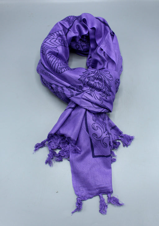 Pure Cotton Wildlife Printed Purple Shawl with Furka