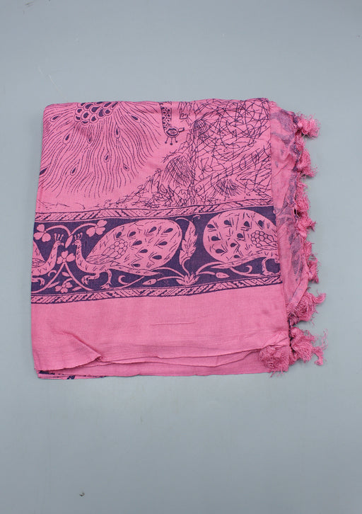 View full detailsPure Cotton Peacock Print Dark Pink Shawl with Furka