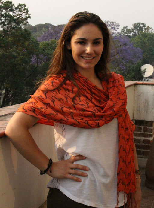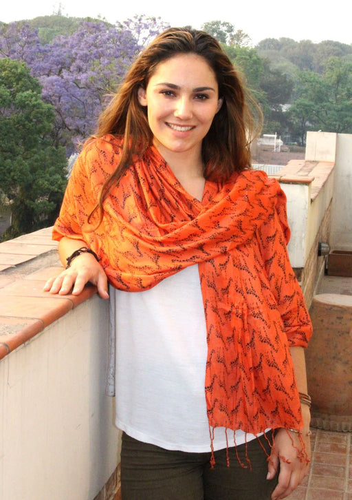This elegant and soft cotton shawl is printed with Giraffe print. The orange shawl is printed with black giraffes all over. This shawl is very soft...