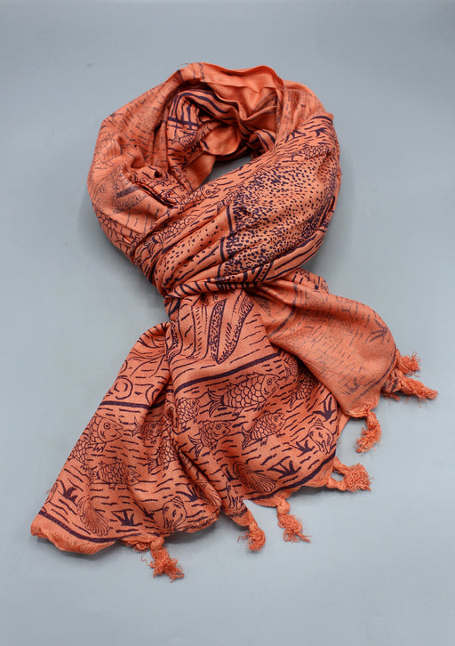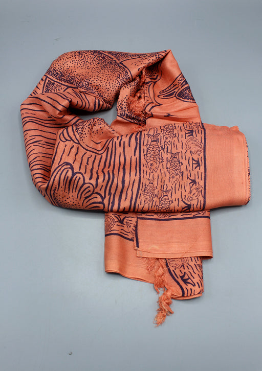 Mandala Printed Pure Cotton Orange Shawl with Furka