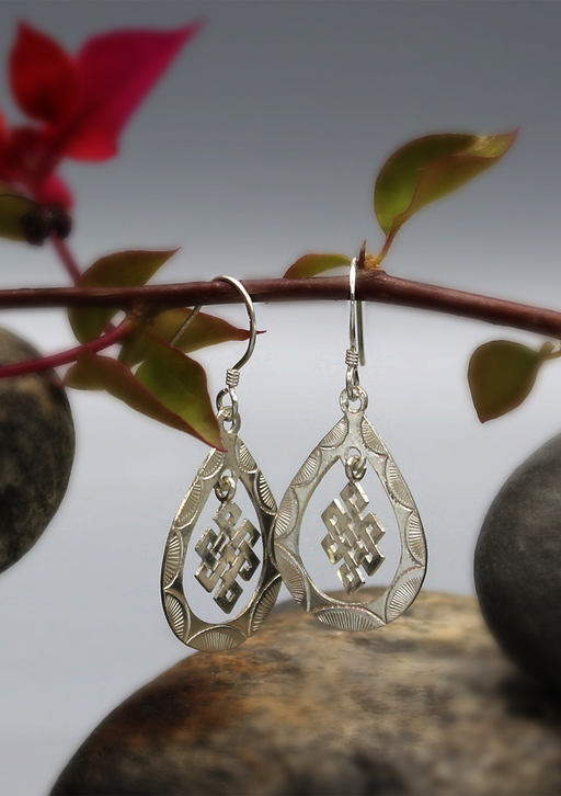 This endless knot earrings is made of silver and finely hand carved in Nepal. Endless Knot is one of the Eight Auspicious symbol. It represent the ...