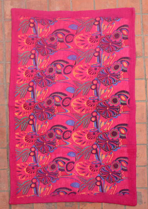 Bright Pink Felt Wool Flower Print Indoor Mat