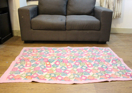 This is a wonderfully colorful zig zag patterned rectangular felt rug. Our women artists first felted the woolen balls and then stiched each one of...