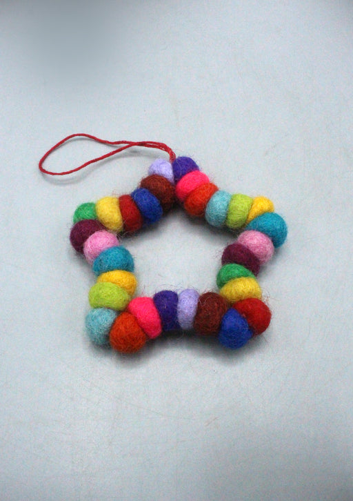 View full detailsHandmade Star Wall Hanging with Multi-Colored Felt Balls & Bell – Wool Décor from Nepal