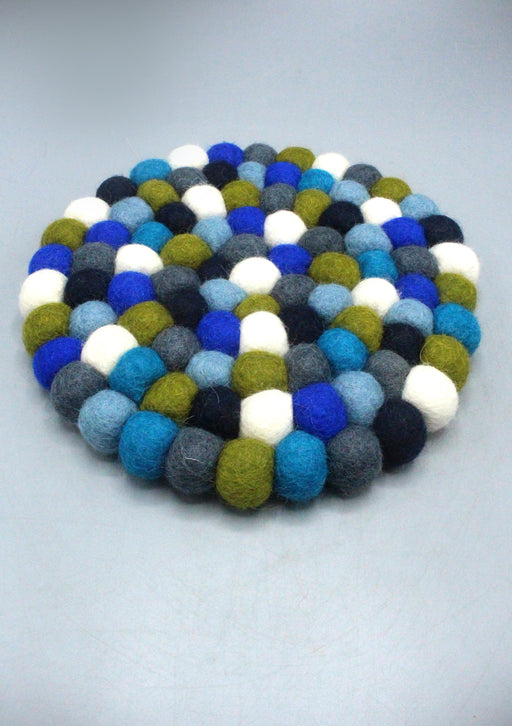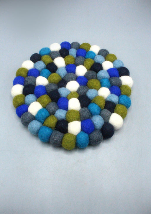 This is a Green, Blue and White Colored Felt Ball Round Trivet. This trivet is perfect addition to your kitchen ware during holidays as its bright ...