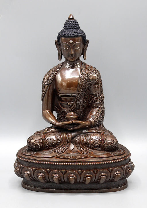 View full detailsCopper Oxidized Amitabha Buddha Statue with Conch Carved