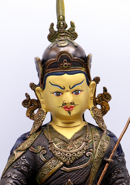 A copper statue of Guru Padmasambhava, also known as Guru Rinpoche, represents the revered tantric master who is credited with bringing Buddhism to...