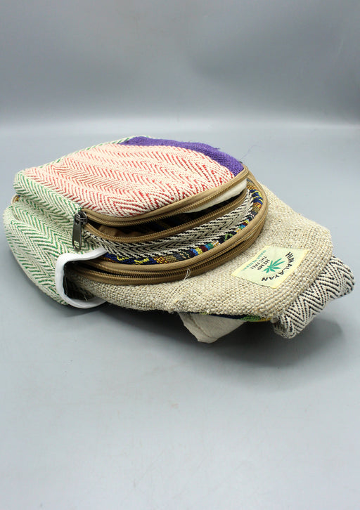 The hemp fanny pack is made in Nepal with pure hemp fiber. This fanny pack has three various sized pouches all with zipper. The waist strap is 44 i...