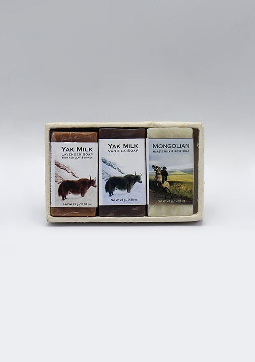 This set of Yak Milk Soap consist of three mini soaps 1. Vanilla Soap Himalayan Yak Milk Vanilla Soap, made with nutrient-rich Nak milk from Rasu...