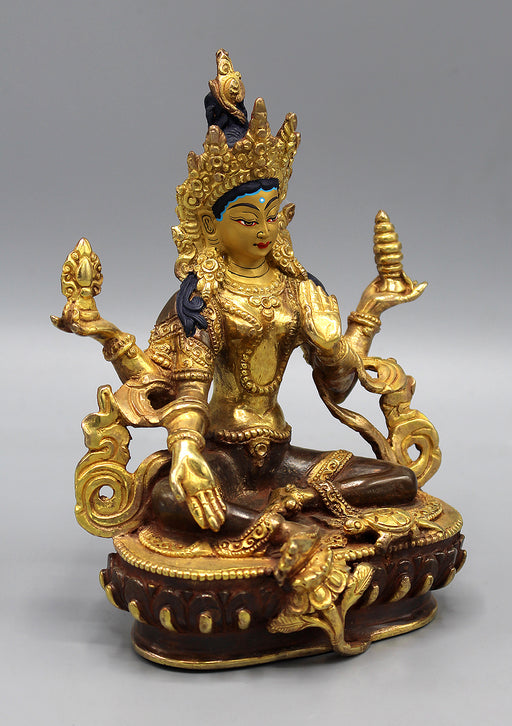 This is a partly gold plated copper statue of Goddess Laxmi. The artists who made this statue are today the 4th generation craftsmen and are equall...