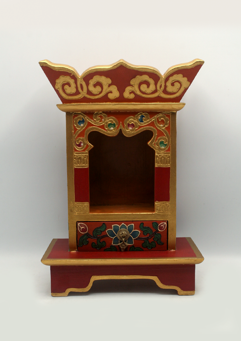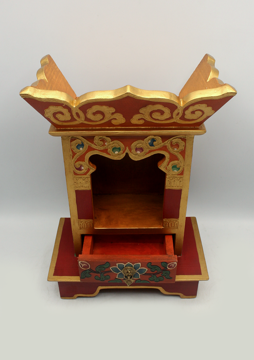The shrine also includes a drawer at the bottom, ideal for storing small ritual items or offerings.