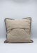 It features a soft, earthy beige tone complemented by a dark brown border lining for a refined finish. The back side includes envelope-style closure with two natural wooden-style buttons, allowing for easy pillow insert changes while maintaining a clean and tailored look.