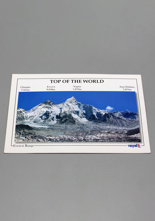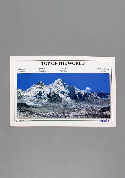 The Top of The World Mount Everest Range Postcard. A view of Everest Range from Kalapatthar, Nepal. Photo Credit: Sujan Shrestha Size: 6.5 x 4.3 i...