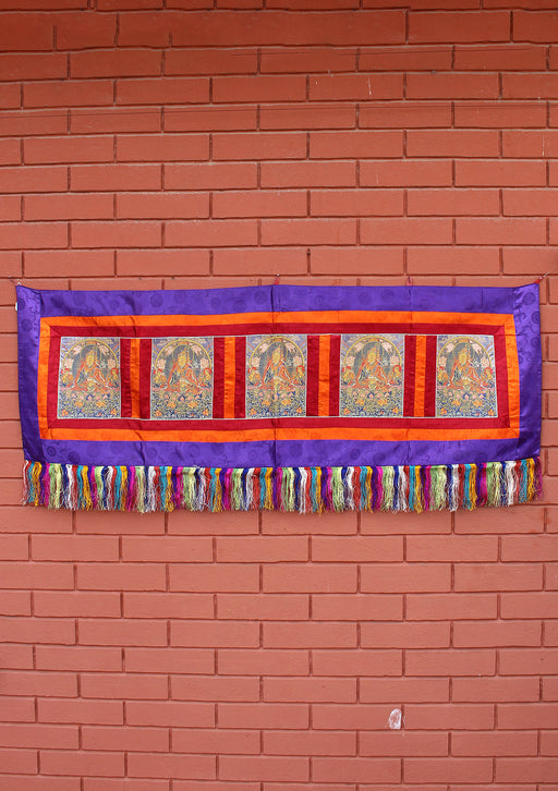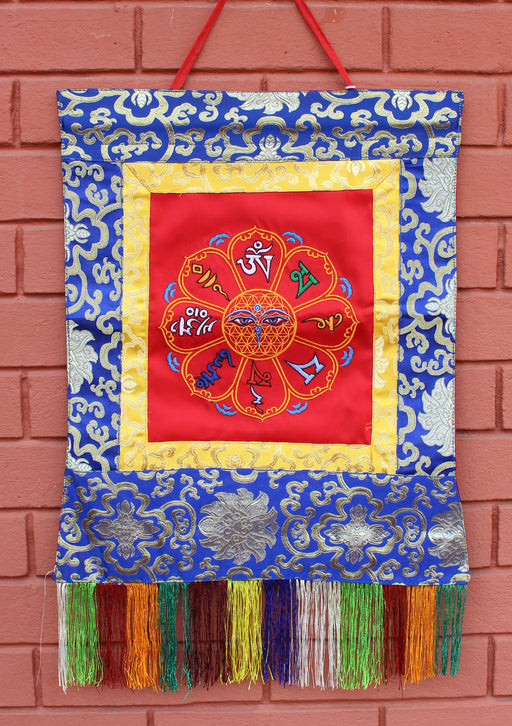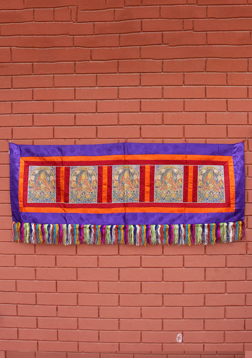 This is a beautifully designed Tibetan brocade polyester wall hanging banner handmade in Nepal. The wall hanging is heavily embroidered with color...