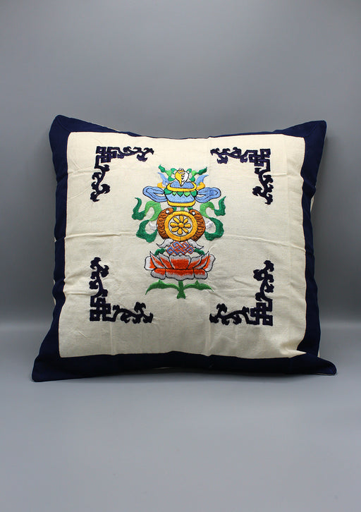 A beautiful hand sewed Hand loom Embroidered Tibetan Eight in One Kalash/Treasure vase symbol Cushion/Pillow Cover is made of cotton. These pillow ...
