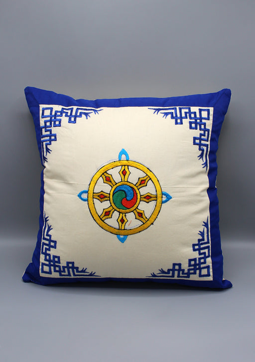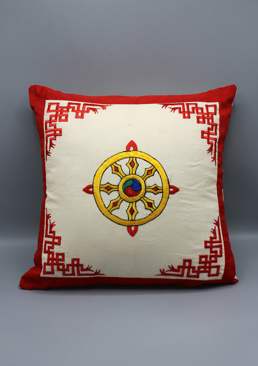 A beautiful hand sewed Hand loom Embroidered Wheel of life dharma chakra Cushion/Pillow Cover is made of terry cotton and looks elegant enough to b...