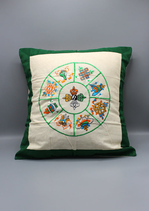A beautiful hand sewed Hand loom Embroidered Tibetan 8 auspicious symbol Cushion/Pillow Cover is made of cotton and looks elegant enough to brighte...