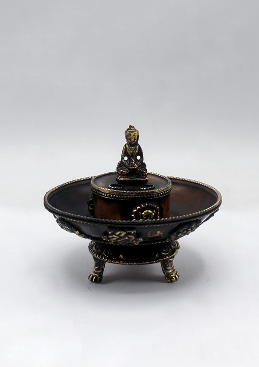 Tibetan Dharma Chakra Incense Burner with 8 Auspicious Symbols