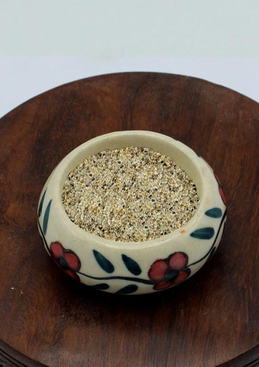 This is a finely handcrafted clay incense burner or 'Makal'. It is especially used for resin or powder incense. The handle on this incense burner m...