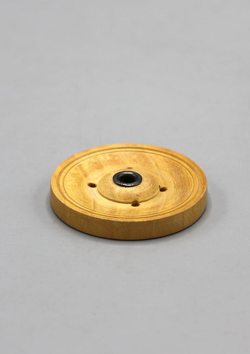 This incense holder is round and has a shallow depth ending in a spiral at the bottom. This incense holder has two holes-one slightly bigger than t...