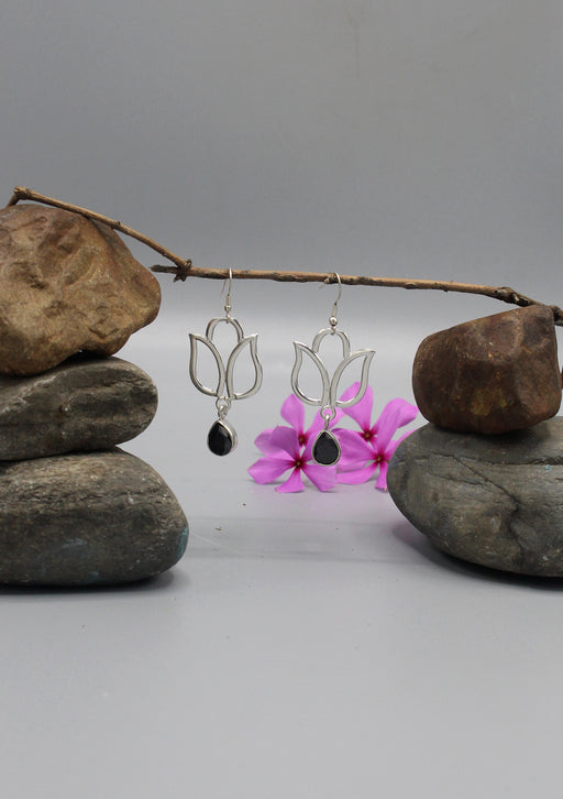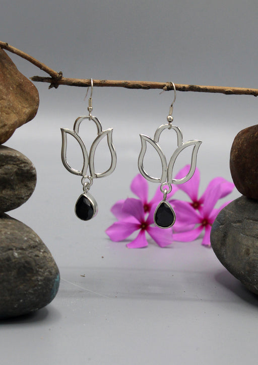 View full detailsOnyx Teardrop Silver Plated Lotus Earrings
