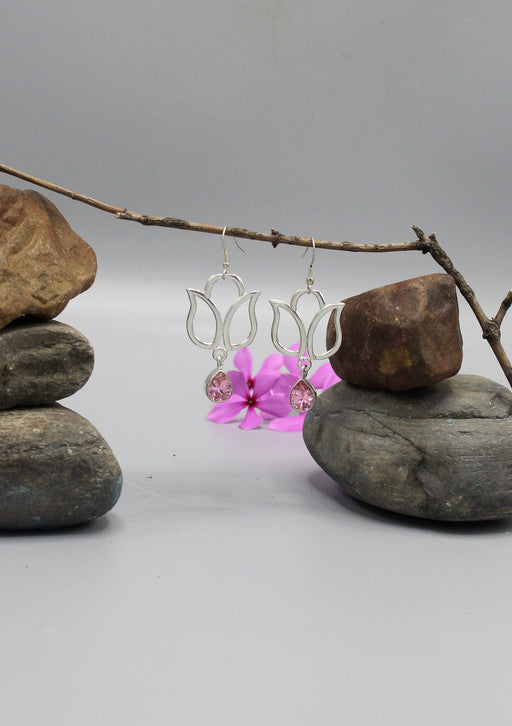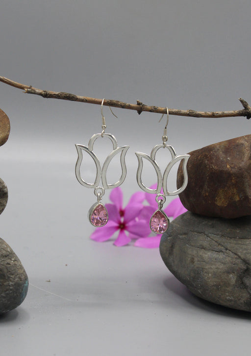 View full detailsRose Quartz Teardrop Silver Plated Lotus Earrings