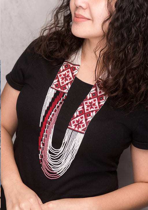 View full detailsShining Red White Glass Beaded Layered Necklace