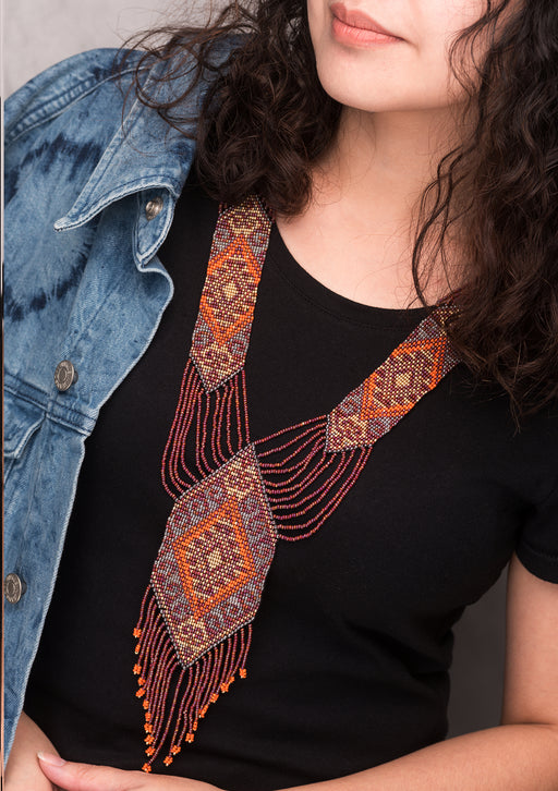View full detailsOrange Maroon Glass Seed Beads Layered Necklace