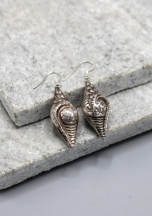 View full detailsTibetan Lucky Symbol Conch Shaped Sterling Silver Earrings