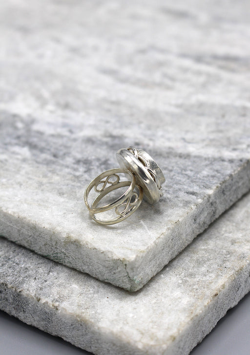 This is a very popular finger ring handmade in Nepal. The ring is made from white metal. The ring is broad and the infinity sign is made on both si...