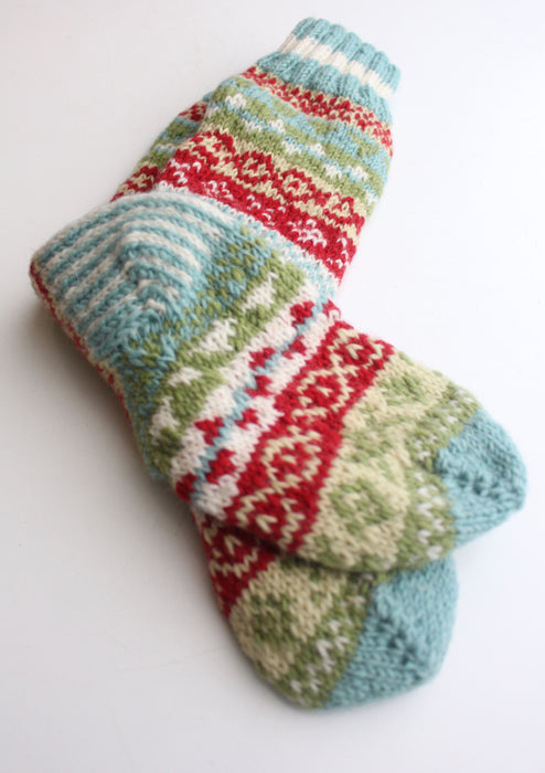 These pure wool knee high socks are hand knit by Nepalese women artisans using Pure Sheep wool from New Zealand. These Nepalese Blue Multicolor Winter Sherpa Knee High Woolen Socks are soft and warm which will keep you safe from the blistering winter chills.