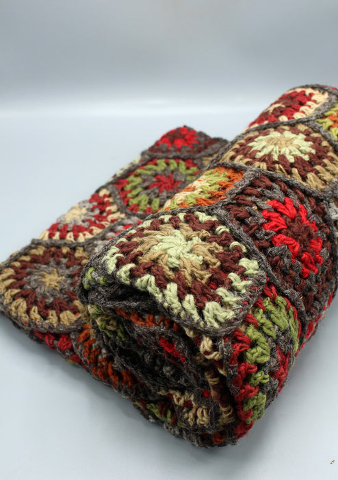 This is a gorgeous multi color hand crochet woolen blanket from Nepal. The process of hand crochet requires technique and dedication and as a result this blanket has resulted in wonderful creation.