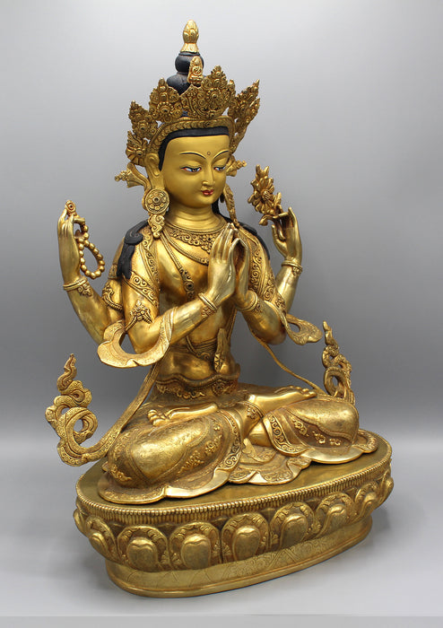 Majestic Gold Plated Masterpiece Chenrezig Statue
