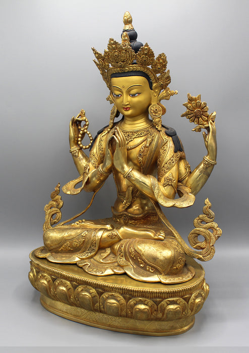 Four Arm Chenrezig is the Buddha of infinite compassion. The four arms signify the four immeasurable attitudes of love, compassion, equanimity and joy.