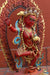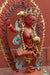 This is a masterpiece statue of Yogini which is gold plated and red painted. The Yogini statue is powerfully depicted as she adorns a human skull mala and crushes a demon with her feet. The power is magnified by the Red painted flaming Parva in the background.