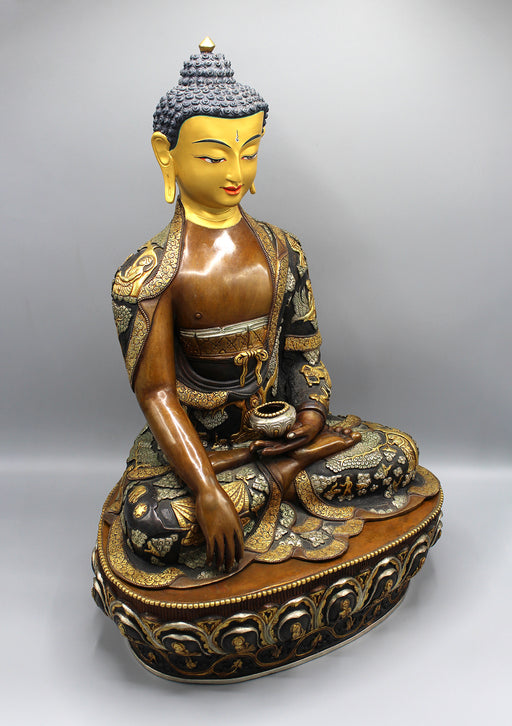 This is an exclusive high quality Shakyamuni Buddha Statue handmade in Nepal. This statue has been made with precision and intricate details. The f...