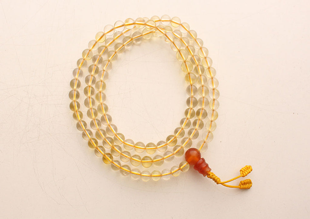 Crystal Clear Beads 108 Prayer Necklace in a Yellow String