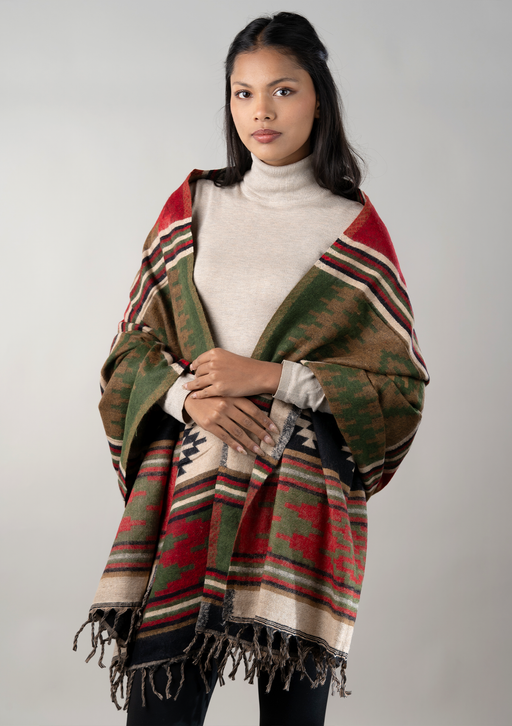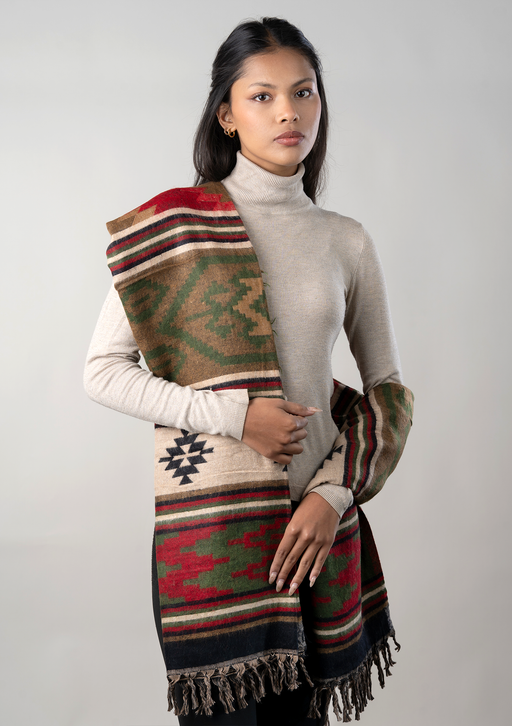This Handloomed Himalayan Geometric Motif Pattern Shawl is skillfully woven in Nepal using traditional handloom techniques passed down through gene...