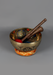 This handpainted singing bowl is beautifully crafted in honor of Amitabha Buddha, the Buddha of Infinite Light and Compassion. Decorated with detailed artwork and sacred motifs, it is not only a spiritual instrument but also a striking piece of art. Designed for both sound and meditation practices, the bowl comes complete with a cushion, wooden mallet and a drum stick, offering a harmonious and resonant tone.