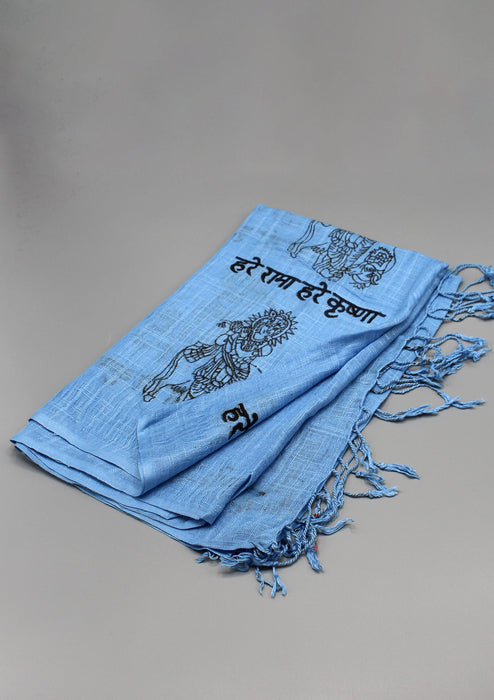 Blue Printed Hare Ram Hare Krishna Deities Cotton Shawl